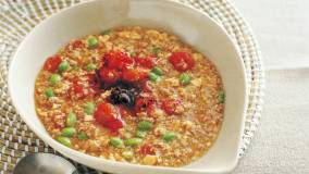 低エネルギーのきのこと、低脂質の豆乳を合わせたヘルシーあえ物。
