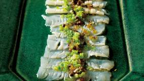 じゅんさいのツルツル感、いぶした大根を漬けた秋田名物“いぶりがっこ”のコリコリ、リゾットを思わせる玄米のプチプチ。いろいろな食感が楽しる一品です。