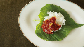 薬のように体によいものがたっぷり入ったコチュジャン風味の肉みそ。ご飯にのせて、えごまの葉で巻いて食べるとおいしいですよ!