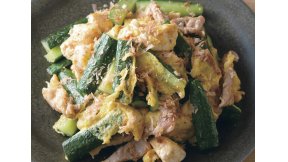 夏にぴったり、カレー味の炒め物です。仕上げにトマトと卵が加わって、とてもマイルドな味わいに。