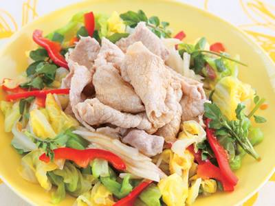 しょうがはせん切りにして下味に、すりおろしてたれに入れます。ダブルのしょうが使いが風味アップの秘けつです。山盛りのキャベツを一緒に味わうのがおすすめ。