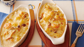 じゃがいもに小麦粉と牛乳を加えて炒め、チーズをのせて蒸し焼きにした、簡単グラタン風の一皿です。フライパンのまま食卓に出してもOKです。