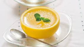 グレープフルーツの皮を型にして、果汁を冷やし固めた爽やかなゼリー。のどごしのよさが、暑い季節にぴったりです。