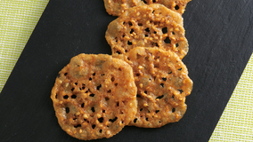 いったごまの風味が際立つ焼き菓子です。レースのように薄くパリッとした食感で、デザートの飾りにしてもおしゃれ!