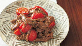 下味をつけた牛肉の濃いうまみと、フレッシュなトマトの組み合わせ。トマトは、仕上げる直前に加えます。