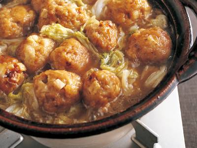 ハンバーグをたっぷりの白菜といっしょに煮込めば、白菜から出る水分で、ちょうどよいとろみに。