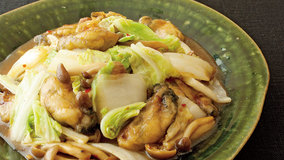 かきとオイスターソース、ダブル使いでコクのある味わいに。甘みを含んだ白菜の水けも、調味料の一つです。