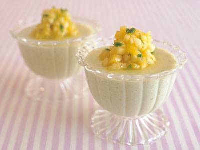 牛乳の代わりに豆乳でヘルシーに仕上げます。寒天とコーンスターチで固めた食感はまるで淡雪のような口溶け。