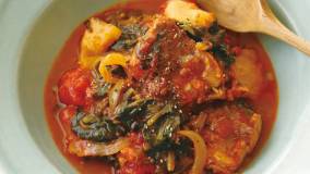 ほうれんそうとさばのトマト煮