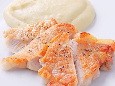 チキンソテーをきのことさらに軽くソテー。きのこはゆっくりいためてうまみを引き出し、にんにくをきかせます。