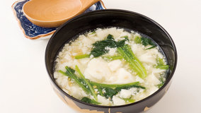 豆腐をたっぷりくずし入れ、食べやすいポタージュ風に仕上げました。手軽で栄養満点なので朝ごはんにもぴったり。