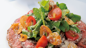 アルミ箔(はく)に包んで焼けば、絶妙に火が通った牛たたきのでき上がり!華やかな肉サラダは、おもてなしにもぴったりです。
