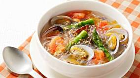 大胆に切った厚切りベーコン&エリンギでボリューム満点です。春菊はスパゲッティと一緒に時間差でゆでると、合理的!