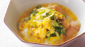 煮汁たっぷりの半熟に仕上げた卵とじ。フワッとしてだしをよく含ませた麩と、半熟の卵のバランスが絶妙です。