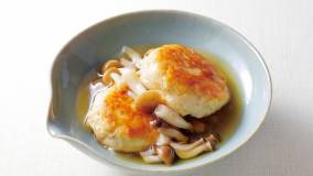 豆腐を合わせてふわふわに仕上げた鶏だんごに、かんぴょうの食感がアクセント。あんに入れたしめじが、味に深みを出します。