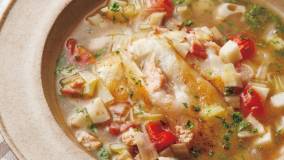 チャウダーは具だくさんのスープ。小さく切った具を炒めてから、ホワイトソースと牛乳で煮て、口当たりよく仕上げます。