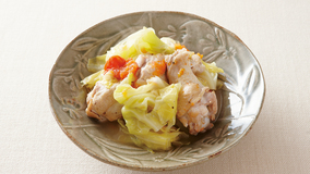 シャキシャキのキャベツに、ひき肉のうまみをからめました。赤とうがらしの辛み、ナムプラーの風味、レモンの酸味でさっぱりエスニック味の一品です。