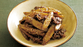 厚めに切ったごぼうに牛肉のうまみと甘辛味がじんわりとしみ込んで、ご飯がすすむボリュームおかずに。