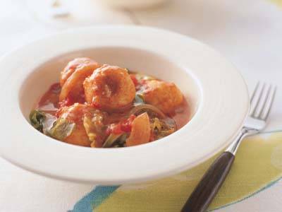 ヨーグルトとトマトジュースで煮込むとまろやかな味わい。市販のルーを使わなくてもとろみがつきます。