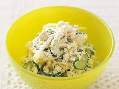 しっとりとしたおからとシャキシャキの生野菜はバランスのよい組み合わせ。あっという間にポテトサラダ風に。
