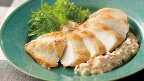 下ごしらえと焼き方次第で、パサつきやすいむね肉が驚きの柔らかさになります!淡泊なむね肉に、野菜の食感も楽しい濃厚なタルタルソースがよく合います。