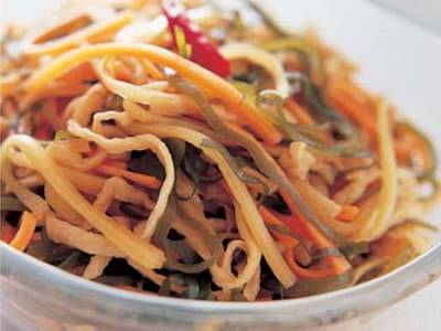 下ごしらえでピーマンのクセを除き、塩昆布のうまみと塩けをプラスします。しょうがの風味がアクセントになります。