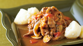 ハンバーグの肉ダネでつくるアレンジレシピです。多めの油でカリッと揚げ焼きにし、うまみを閉じ込めてから煮込んでいきます。