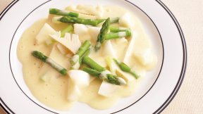 ゆでたてのアスパラガスは、旬ならでは甘さをが引き立ちます。好みで温かいままでも。
