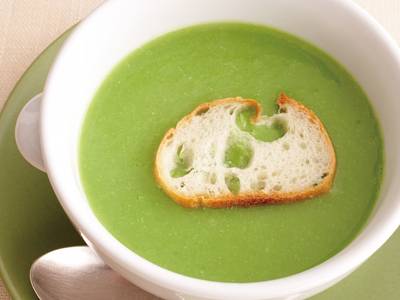 グリンピースだけでつくるシンプルなポタージュ。鮮やかなグリーンと旬の香り、やさしい味わいが魅力の一品です。
