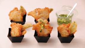 豚天はマヨネーズ入りの衣でサクサク&肉はしっとり。うますぎレモンねぎソースをたっぷりかけて、さっぱりといただきます。