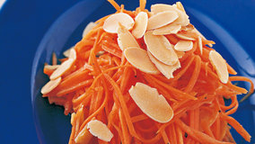 にんじんの甘みを生かすため、オリーブ油は少し控えめに。レモンの酸味とナッツをアクセントに。