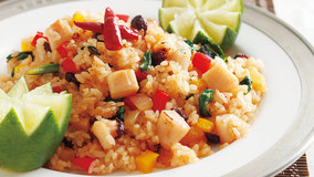 松前漬けの原形ともいわれる「いかにんじん」が焼きそばの具に?!いかの風味、酒のうまみ、香ばしく焼き上げた麺と見事にからみ、シンプルながら味わい深いおいしさです。仕上げにふった粉ざんしょうが、何とも後を引きます。