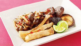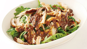 うまみも濃厚、香りも上々な焼ききのこに、バルサミコ酢とオリーブ油、しょうゆのドレッシングを合わせてどうぞ。