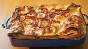パリパリに焼けた上のパスタが、食感のアクセントに。パーティー料理にもピッタリです。飯塚さんがローマでの隣人から教わったレシピで、「彼女がつくるのが世界でいちばんだから、世界で2番目においしい」という、とっておきのラザニアです。