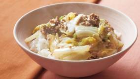 こってり濃厚な甘辛味と春キャベツの見事なハーモニー。軸は香り出し、外葉は彩りに、内葉は生のままご飯に敷いてと、3種のキャベツ使いが光るアイデア丼です。