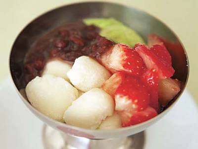 ひな祭りにふさわしいミルクわらびもち。ちょっと豪華に、和風のパフェ仕立てにしました。