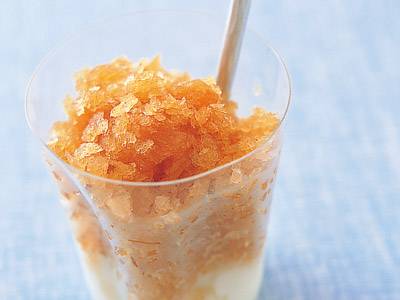 シャリッとした食感が楽しめる紅茶みぞれ。単品でも十分においしいけれど、ミルクみぞれと2層にすると、おいしさ倍増です。