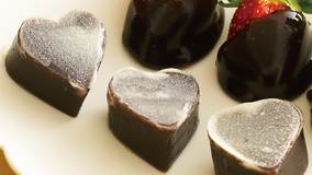 ようかんを使って簡単!きんつばのできあがり。一口サイズのハート形にして、和菓子好きな方へのバレンタインデーのブレゼントに。