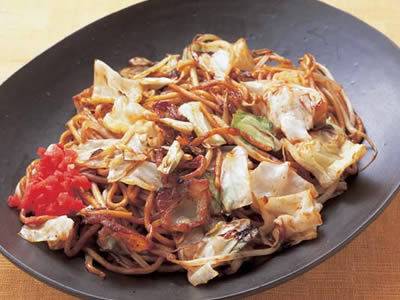 トマトケチャップを加えた濃厚なソース焼きそば。