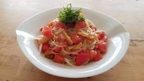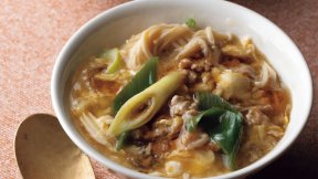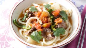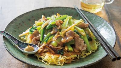 ホッとするあっさり味、でも満足感あり!その秘密はしらたきの煮方にあります。しゃきしゃき野菜をたっぷりのせてどうぞ。