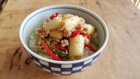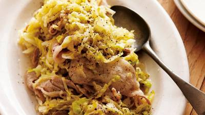 かぶと豚肉のしょうがじょうゆ蒸し煮