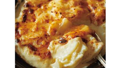半熟卵を丸ごと入れたグラタン。柔らかな黄身とまろやかなソースがハーモニーを奏でます。ほうれんそうは少しずつゆでると歯ごたえがよくなりますよ。