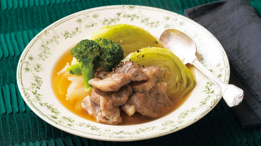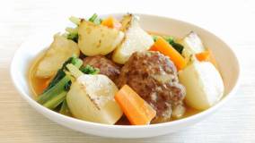 ゆっくりじっくり煮込むから、肉と野菜はホロホロ、スープはうまみたっぷり。野菜はかぶやごぼう、れんこんなどお好みで。冷めてもおいしく食べられます。