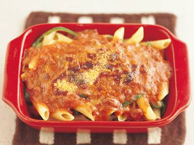 ミートソース缶で手軽に、おいしくつくりましょう。こんがり焼き色とチーズの香りが、ごちそうです。