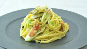 ねぎの甘み、苦味とベーコンのうまみが一体となったソースが絶品。ねぎには血行改善、疲労回復効果が期待できます。