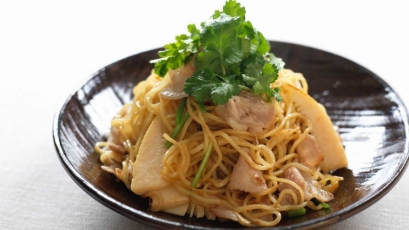 定番のごぼうサラダにみずみずしい水菜とカリカリのちりめんじゃこをプラスします。豊かな食感が楽しいボリュームサラダ。ご飯にもよく合う味つけです。
