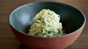 「パプリカの昆布じめ」を使った一品。昆布じめのうまみにかんきつをプラスして、さっぱりとしたサラダに。