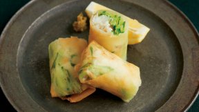 揚げ衣はパン粉ではなく、細切りにした春巻の皮!ユニークな見た目も、驚くほどザクザクの食感も秀逸です。