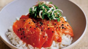 韓国風の味とスタイルで、いつもとひと味違うまぐろが楽しめます。刺身用の薄切りをワンランクアップ。