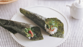 旬を迎えたぶりと大根を、薬味たっぷりのご飯でのり巻き状にし、香ばしい焼き色をつけたおにぎり。ぶりと大根の皮も、具材や副菜に活用してむだなく使いきるエコなレシピです。